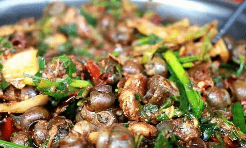提到夏天美味,龙陵田螺可谓是一绝。选用新鲜的田螺,搭配各种调料进行炒制而成。其口感鲜美,肉质嫩滑,是一道“嗦味十足”的特色小菜,极其下饭,让你回味无穷。