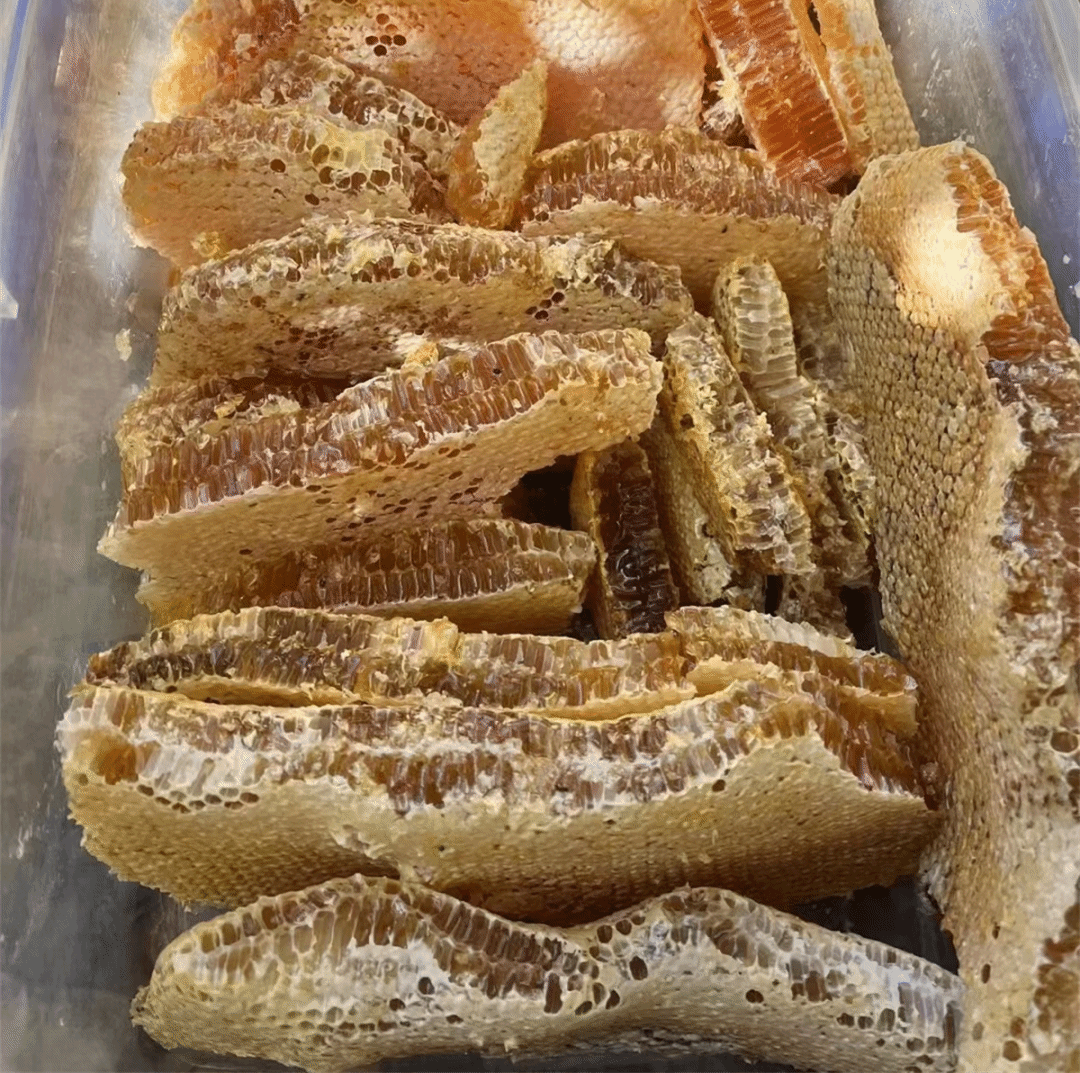 五月的天总是变化多端,时而晴朗,时而下雨。如遇天气晴朗,则正是采蜜的好时机,蜂农们来回奔走于群山间,使用古法工艺采收蜂蜜。点燃草秆、用烟熏走蜜块上的蜜蜂,小心翼翼将蜂饼取出,用刀划开表层,金黄色的蜂蜜流淌出来,浓郁的香气让人垂涎欲滴。你以为这就完了?“蜂蛹”大宴也拉开了序幕,喜爱美食的龙陵人怎么会错过这道美味。取出来的蜂蛹不论是煮的、煎的、炸的、炒的、拌的都十分可口,满足了大部分美食爱好者的味蕾。
