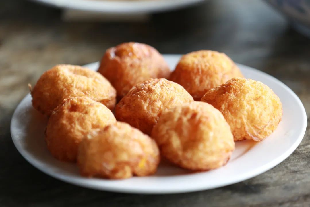 松山荷包蛋。松山荷包蛋,又被称作“松山明珠”,其用料考究,必须选用当地一个月以内的新鲜土鸡蛋,在当地人高超的手艺下,土鸡蛋煎得形似大个头的汤圆、又像金黄的小蛋糕,外皮酥脆,内里还是溏心,深受大家喜爱。
