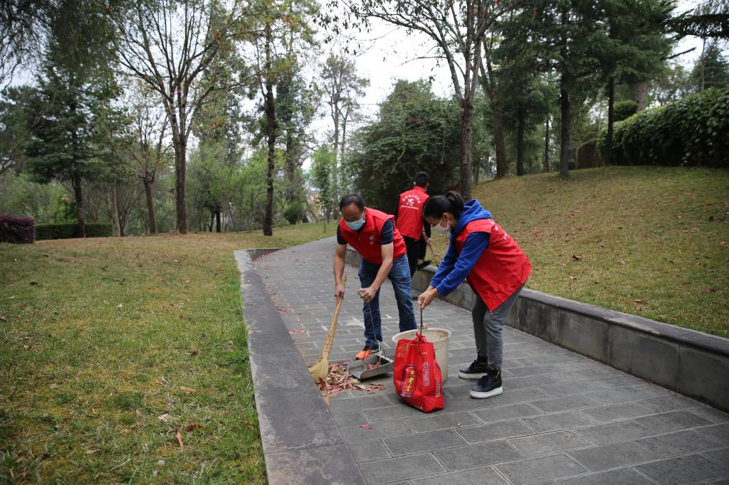 三是开展志愿服务活动。组织干部职工纷纷撸起袖子,拿出工具,穿上志愿服,从身边开始,从点滴做起,清扫周围散落的垃圾、落叶,切实开展环保志愿服务活动。
