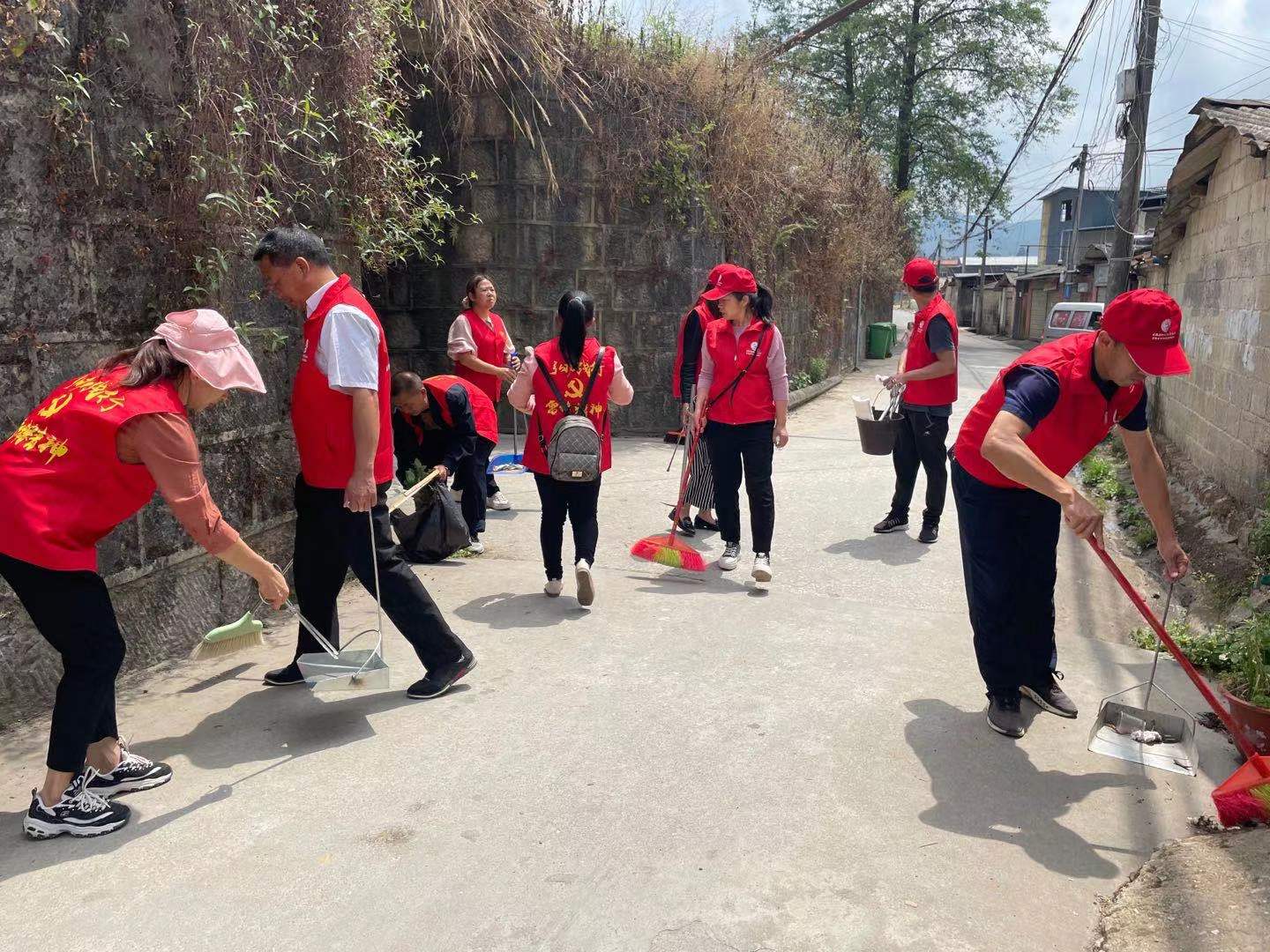 大家身着红色志愿服,手持扫帚、锄头、铁铲等清理工具,地毯式清理了社区路面、夹道、沟渠等卫生死角,整理了胡乱停放的自行车及电动车,社区公共区域的卫生状况得到了显著改善。
