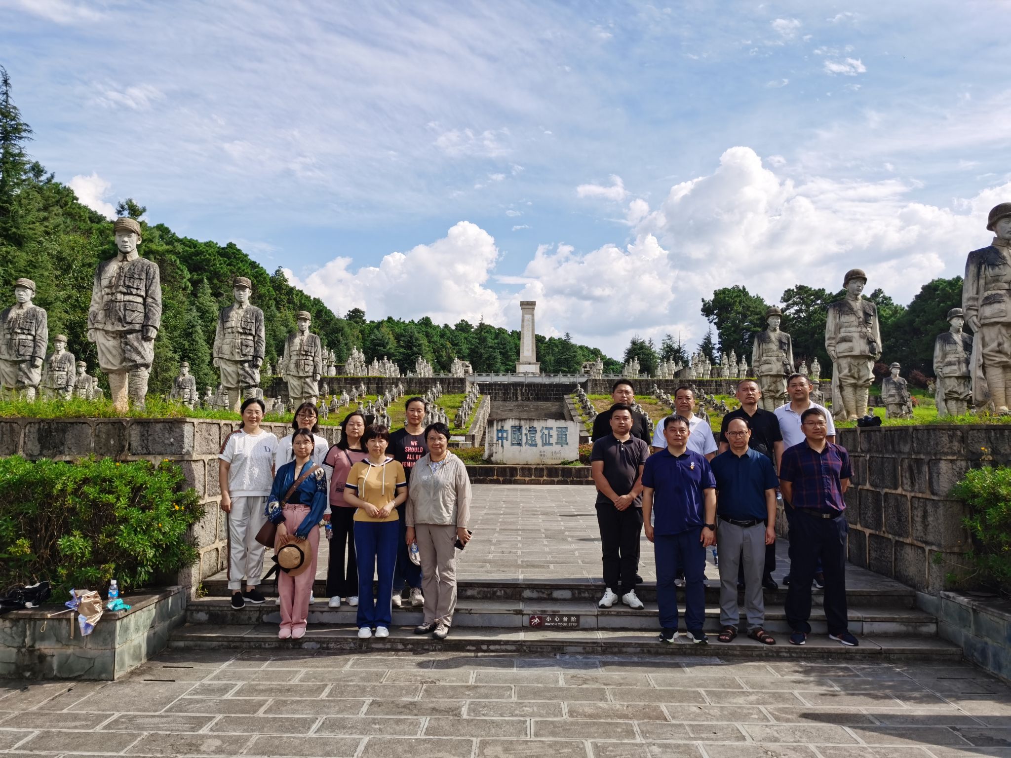 在解说员的解说引导下,党员们到松山遗址点,边看边听讲解,全面了解了松山战役的时代背景和战争过程;瞻仰了远征军雕塑群,并沿着栈道驻足观看抗战遗址中纵横交错的战壕和防御工事,大家深切感受到松山战役的惨烈和日本军国主义给滇西人民带来的伤痛,以及中国军民奋起抵抗侵略者所付出的巨大代价。