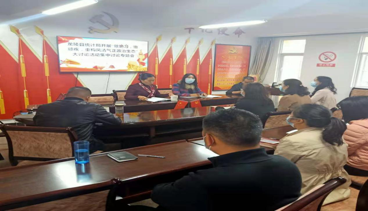 近日,龙陵县统计局召开以“加强党性锤炼 筑牢思想道德防线”为主题的除陋习,治顽疾,重构风清气正政治生态大讨论活动专题会议,参加讨论活动人数30余人次,撰写心得体会19篇。