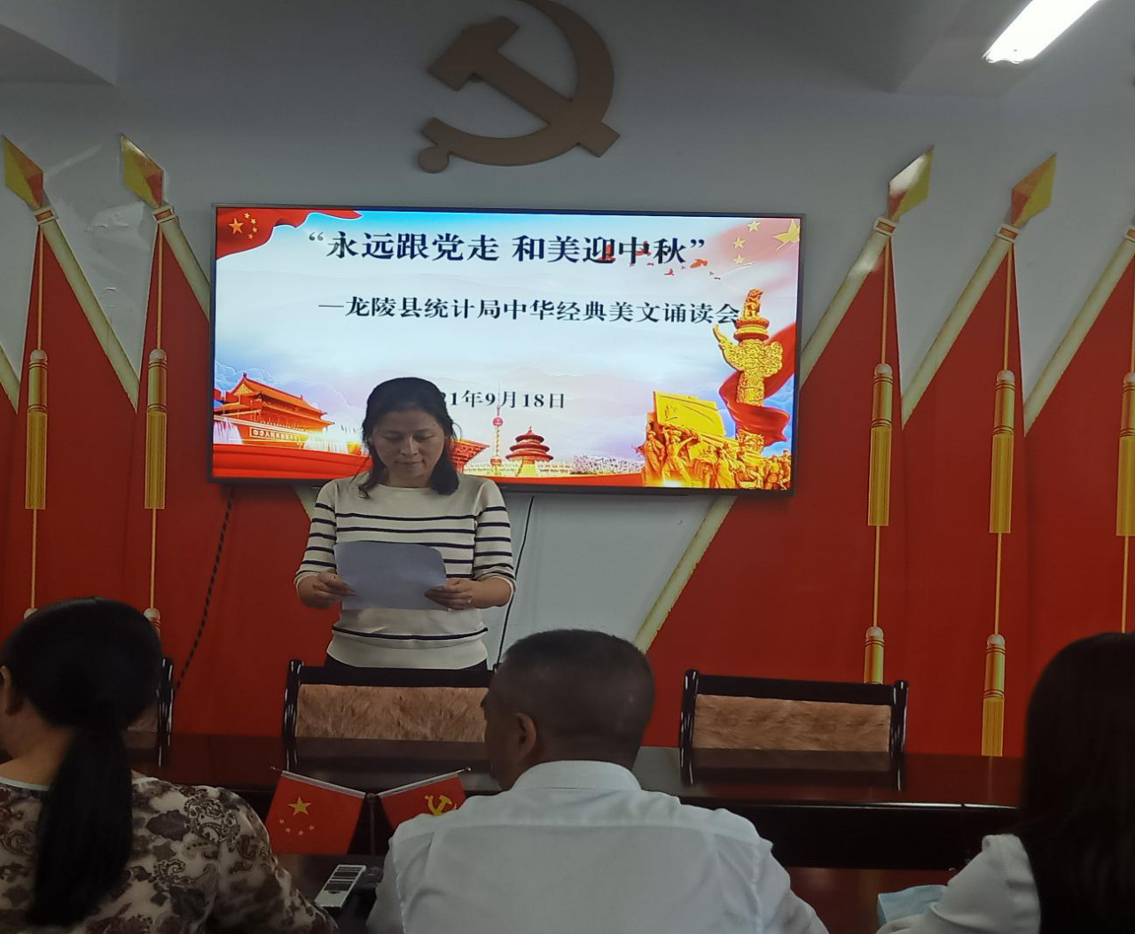 为弘扬中华优秀传统文化,推进传统节日振兴工程,进一步丰富干部职工文化生活。9月18日,龙陵县统计局开展“永远跟党走·和美迎中秋”主题活动,以诵读红色经典,诵读中秋经典诗词等形式,宣传党的奋斗业绩、传承党的精神谱系,进一步激发全体干部职工“听党话、感党恩、跟党走”,迎和美中秋,爱党中秋情怀。