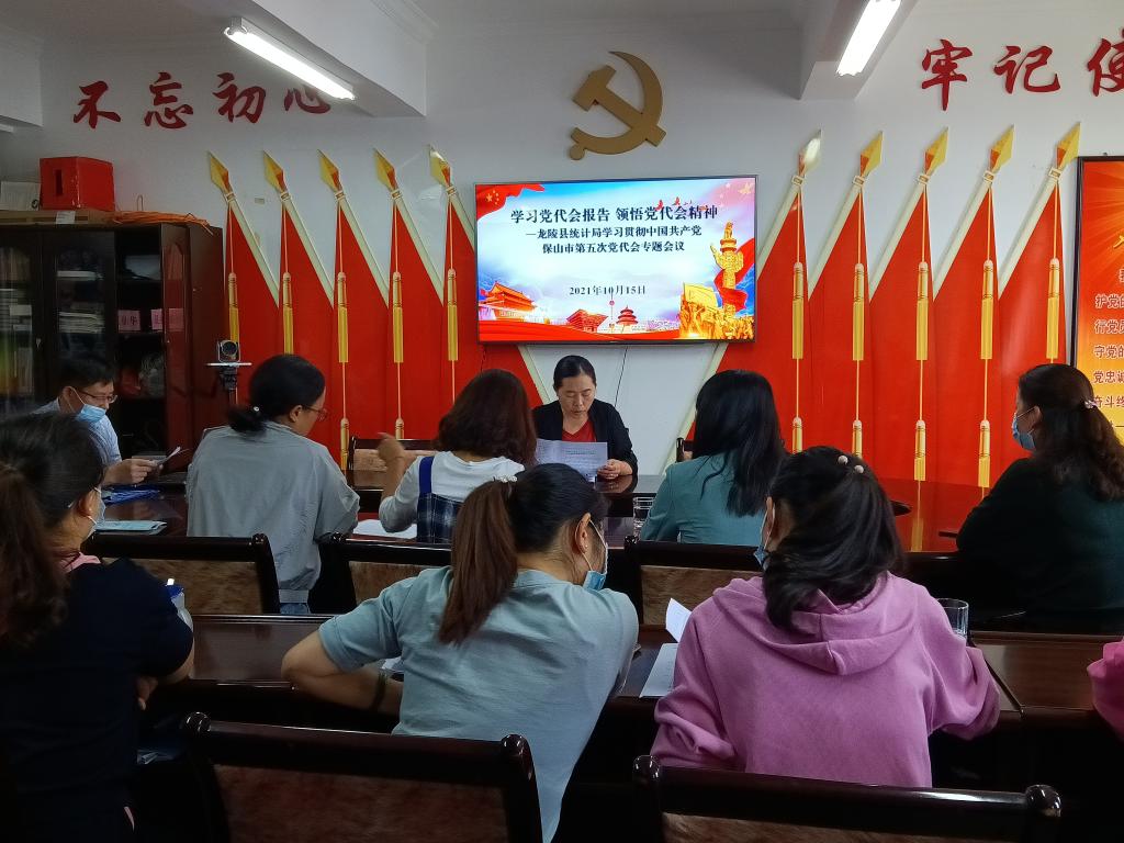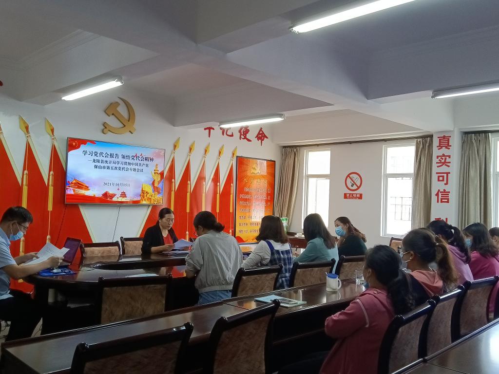 近日,龙陵县统计局召开学习贯彻中国共产党保山市第五次党代会专题会议,党组书记、局长传达市第五次代表大会精神,全局共17人参加。