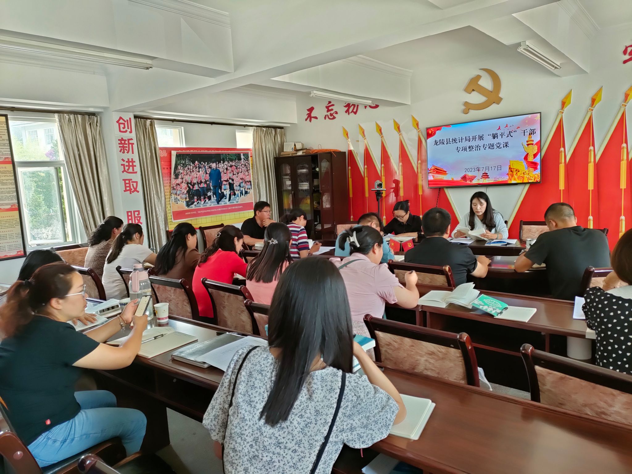 会上,传达学习了龙陵县在学习贯彻习近平新时代中国特色社会主义思想主题教育中开展“躺平式”干部专项整治动员部署会精神和实施方案的重点内容及工作要求,并就“躺平式”干部专项整治工作进行了动员部署。党组书记李源同志以“坚持实干当头,摒弃躺平心态,巩固统计部门整体形象持续向好的发展态势”为题讲授了专题党课,还开展了“世情、国情、党情、省情、市情、县情”形势教育。