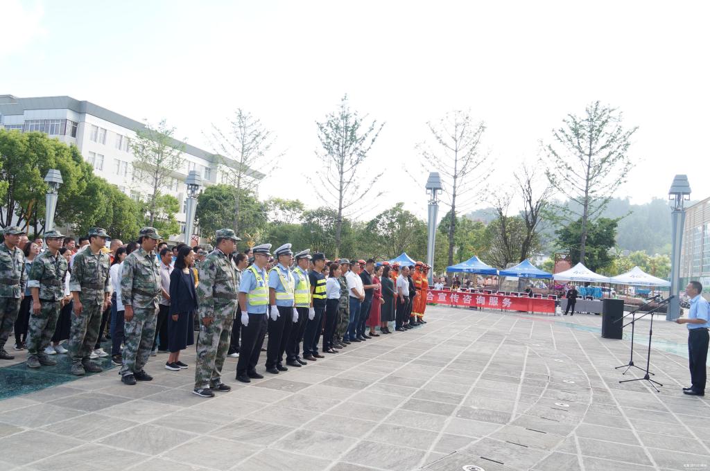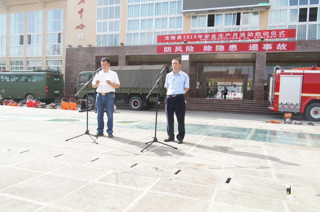 6月11日,龙陵县举行了由县安委会主办,龙山镇承办的2019年“安全生产月”启动仪式暨宣传咨询日活动。启动仪式在全民健身中心广场举行,由县安委办主任郭少能主持。县委常委、常务副县长杨先超出席活动,并作动员讲话,龙山镇作了表态发言。镇直机关、安委会成员单位、消防大队、森林消防中队、专业扑火队及相关企业等200余人参加启动仪式。