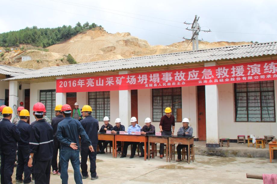 6月24日下午,龙陵县人民政府在永昌硅业亮山采矿场组织坍塌事故应急演练,县安监局、象达乡政府、云南永昌硅业股份有限公司领导参加了此次演练。
