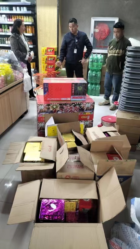 1月25日以来,专项整治组对全县10乡镇的重点集市开展烟花爆竹运输、储存、销售和燃放等各环节的安全监管,严厉打击无证经营、非法运输、许可证过期等行为,整治下店上宅、前店后宅、集中连片经营,以及销售超规格或不合格产品等违法违规行为。截至目前,出动执法检查人员20人次,共检查10条集市,一户批发企业和35户烟花爆竹零售点,扣留违禁销售的大小西炮、擦炮、砸炮、鞭炮、烟花等共计110箱。依法立案查处4起,没收烟花爆竹制品110箱,罚款人民币7000元。