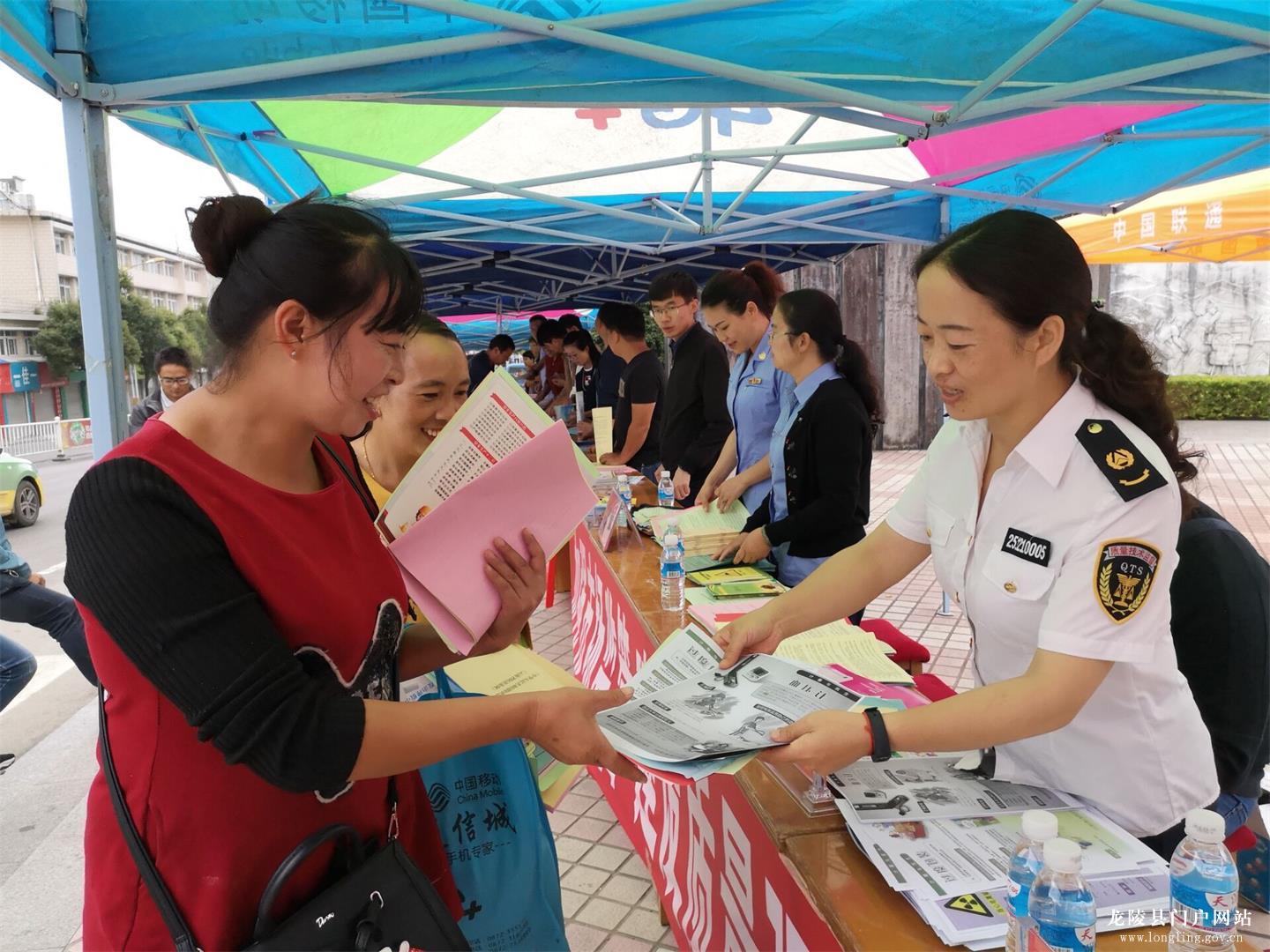 为促进社会质量共治,推进质量强县建设,9月25日上午,由龙陵县人民政府主办,龙陵县市场监管局联合县工业商务和科技信息化局、县水务局、县农业局、县环境保护局、县文体广电旅游局等13个县质量强县工作领导小组成员单位,以及云南康丰糖业(集团)有限公司、云南永昌硅业股份有限公司、云南极斛生物科技有限公司等7个获得各级政府质量奖和省市名牌产品代表企业共50余人,在县城抗战纪念广场开展以“加强市场监管 建设质量强国”为主题的2018年“质量月”集中宣传咨询活动。