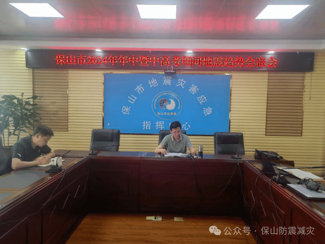 为全面贯彻落实全省2024年年中地震趋势跟踪会商会精神,认真总结2024年上半年全市震情监视跟踪工作,进一步分析研判2024年下半年和近期(中高考期间)保山市及邻区地震形势,6月3日下午,保山市地震局组织召开了全市2024年年中地震趋势会商会。
