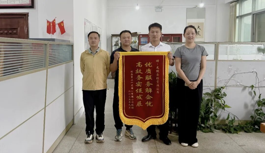 近日,龙陵县投资促进局办公区内,一面绣着“优质服务解企忧,高效务实促发展”的鲜红锦旗格外醒目,鎏金大字在阳光下熠熠生辉。这面满载谢意的锦旗,来自一家落户龙陵的广西企业——企业负责人专程登门赠送,只为感谢县投促局全程护航项目落地的贴心与高效。