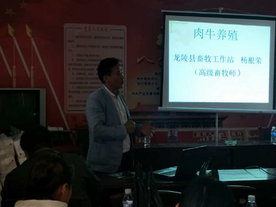 本次活动还邀请了县畜牧兽医工作站的工作人员,结合龙陵县生态循环农业肉牛养殖项目,就肉牛养殖的前景、常见的肉牛品种、饲草种植及青贮技术、育肥牛选购方法和疫病防治等知识进行了专业培训。