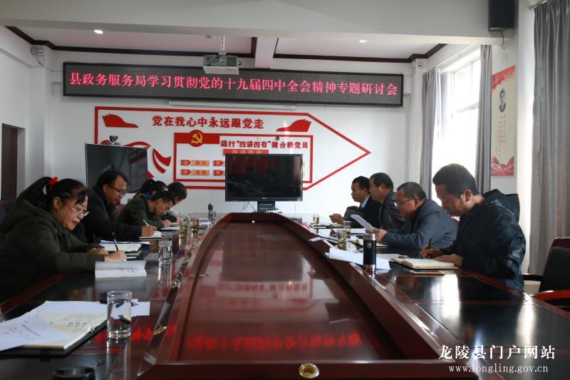 12月17日,在会前充分酝酿的前提下,县政务服务局以局党组理论学习中心组集中学习和党支部“主题党日”活动形式组织开展党的十九届四中全会精神专题研讨。