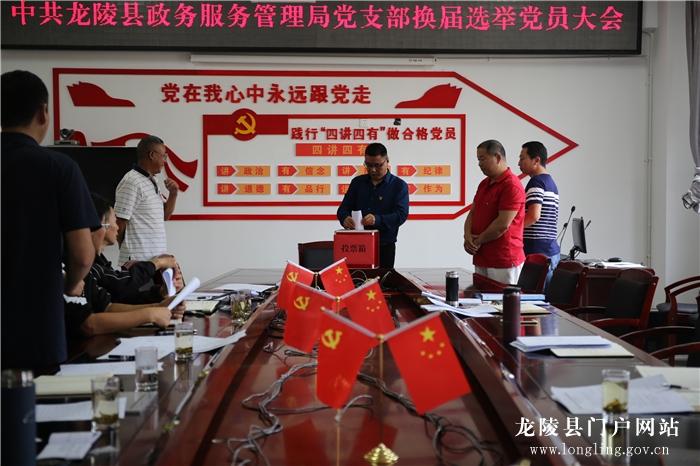 7月29日,龙陵县政务服务管理局党支部召开换届选举党员大会,选举产生了新一届支部委员会。联系纪检组兰文江同志到会指导。