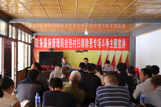活动中政务服务管理局党支部书记就扫黑除恶专项斗争进行主题宣讲。宣讲从扫黑除恶的背景、重要性以及扫黑除恶专项斗争应掌握的几大知识点几个方面进行了详尽的阐释,并就此项工作提出要提高政治站位、要压实工作责任两个方面工作要求。