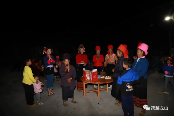 9月10日当天下午龙山镇芒麦村阿昌寨子一片热闹景象,由小组长、妇女之家共同组织开展“欢度中秋佳节,弘扬民族文化,促进民族团结”活动。寨子男女老少身着民族服装共同参与,在小组活动场所摆起“长龙”,各族群众围桌而坐,一起吃月饼、赏满月、话家常。吃完月饼就到了互动环节,大家山歌对唱、共跳“窝罗舞”,载歌载舞,其乐融融。