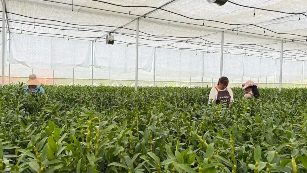 联动共走“致富路”。基地作为带动农户增收和壮大村集体经济的关键平台,创新构建“党组织+企业+合作社+农户”利益联结机制,全面推行“包种苗、包规划、包选址、包技术、包回收”的“五包”服务模式,为农户免费提供种苗、全程技术指导和保底价回购,极大降低农户参与产业发展的风险,有效激活杨梅山村庭院经济。目前已带动20余户农户参与石斛花卉种植,总面积近10亩,形成“带动一片、致富一方”的集群效应,“产业之花”愈加绚烂。