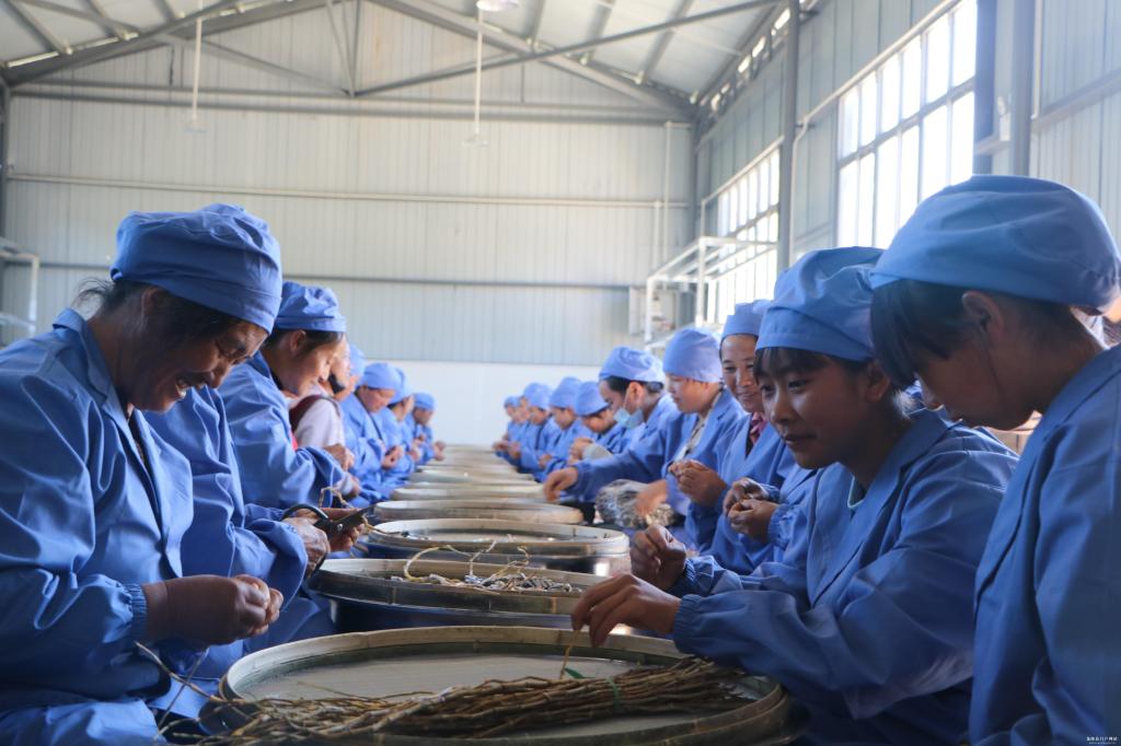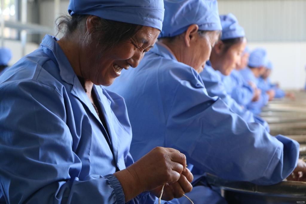 距离村民委员会不到200米的地方,就是工厂所在地。会议结束后,进入工厂开业的重要环节。大门打开的那一刻,大家争先恐后的进入厂房,换上蓝色制服,整齐地坐到电烤盆前,看到篾筛里的石斛干枝条,忍不住开始动手制作起来。集中加工给群众一种全新的体验,宽敞明亮的厂房、热热闹闹的氛围、你追我赶的比拼劲头,取长补短技术切磋,与散户加工方式带来不一样的体验。