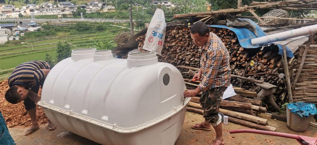 6月,小田坝社区党总支书记带着村委会年轻人一家一家 入户,宣传“厕所革命”补助政策、好处,实地查看农户是否具备改厕条件,并推荐符合农村实际的一体化化粪池。没过几天,村民董春良与村委会联系,想为家里的旱厕“改容换貌”。收到消息后,党总支书记带上技术人员,立即来到董春良家里,根据现场地势、排水等情况指导董春良进行安装。想到施工结束,干净、整洁、方便的无害化卫生厕所就能取代之前又臭又脏的旱厕,董春良一家人都十分高兴。