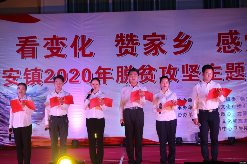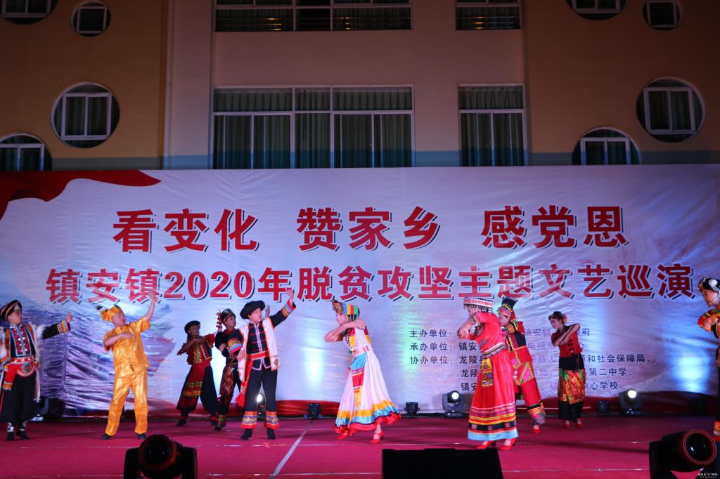 “中华民族一家亲,同心共筑中国梦……”在舞蹈《同心共筑中国梦》中晚会正式开始。龙陵县第二中学的年轻舞者们在激昂的歌声中起舞,深情表达对党和祖国的无尽热爱、美好祝愿和坚定跟党走的理想信念;快板《镇安大变化》《脱贫攻坚颂党恩》向群众描述了脱贫攻坚后镇安发生的翻天覆地的变化,带领群众回顾脱贫攻坚路上镇安人民付出的努力,更深刻体会现在幸福生活的来之不易;诗朗诵《五彩镇安脱贫攻坚大决战》中的党建助理员化身朗诵者,用青春热血许下庄严承诺,“向贫困宣战”,坚定打赢镇安脱贫攻坚战的决心和信心;歌舞《山间情歌》《扶贫之歌》、歌曲《幸福不会从天降》,激情昂扬的歌声、活力四射的舞蹈,表达对镇安的热爱和对幸福生活的祝福;镇村干部现身说法,讲述扶贫工作中的苦与乐,还有情景剧《我们的寨子》……台上歌声朗诵声,台下掌声欢呼声,相互交织,汇成激情四溢的海洋。