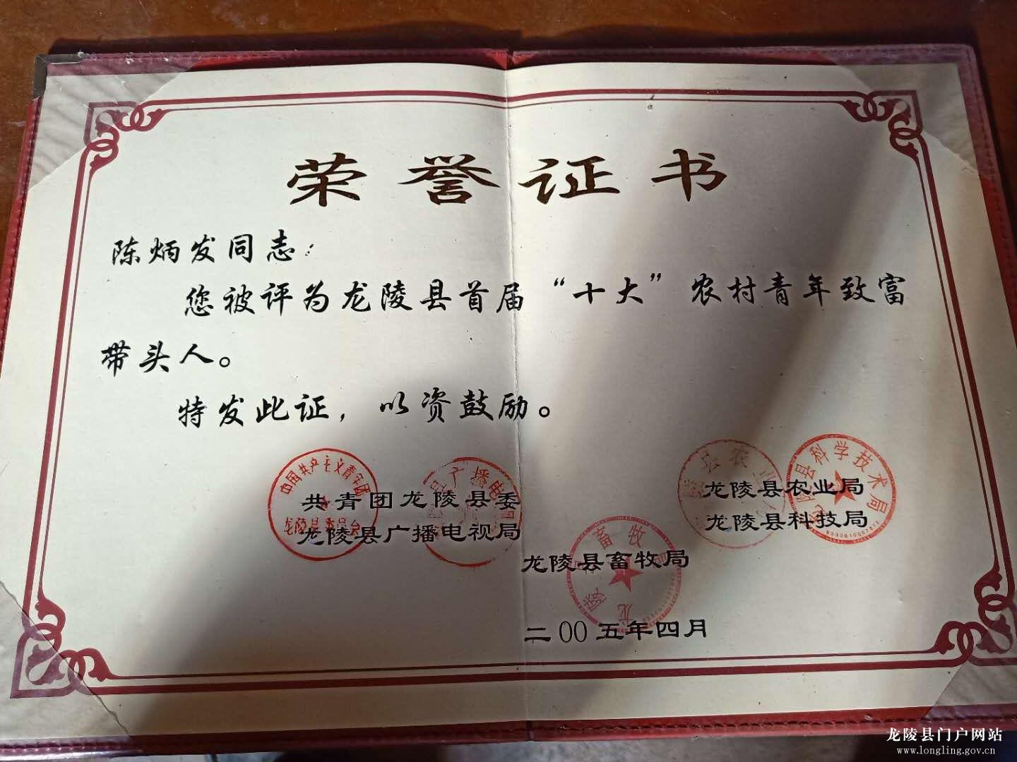 老陈17岁开始自己的创业之路,24岁拥有自己的大种树养殖场,35岁成立了自己的龙陵县大树宝农业发展有限责任公司并不断发展壮大;带动邦别、户帕、竹箐、邦迈、松山、百花等周边区域1000余户农户发展肉牛养殖和青储饲料种植,其中200多户建档立卡贫困户实现脱贫致富。曾于2005年,被评为“龙陵县首届‘十大’农村青年致富带头人”。
