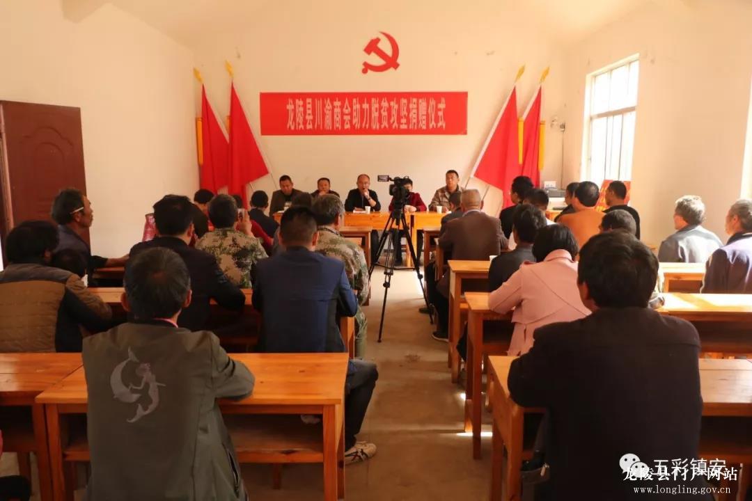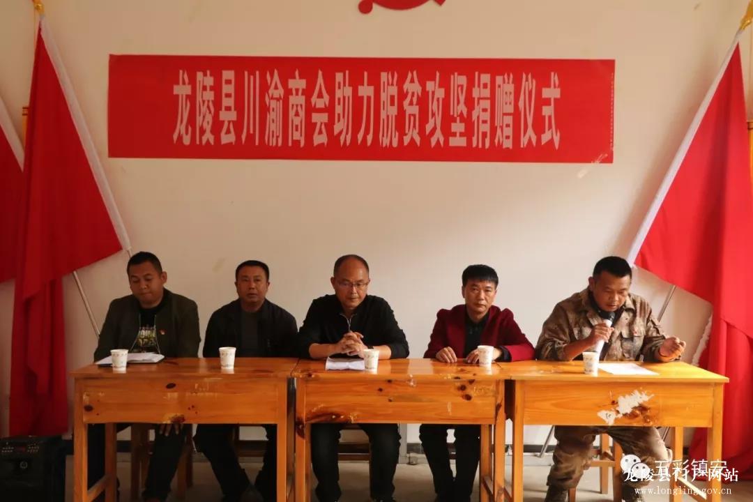 11月3日,龙陵川渝商会助力脱贫攻坚捐赠仪式在邦迈社区正式举行。镇党委书记杨敏亮、龙陵川渝商会会长杨润平、龙陵川渝商会常务副会长胡洪等人参加捐赠仪式。