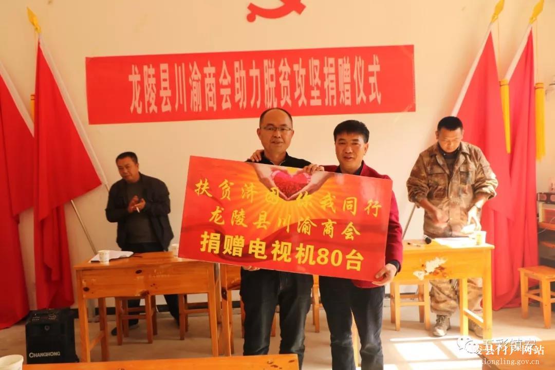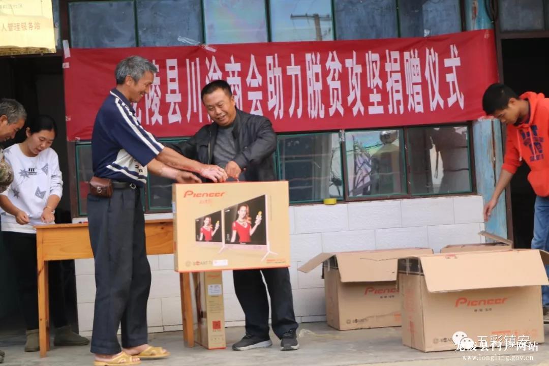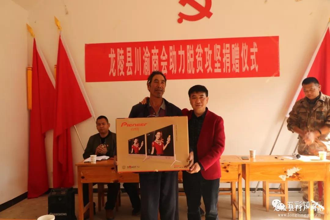 捐赠仪式上,川渝商会会长杨润平代表商会向镇安镇捐赠液晶电视80台,并亲自为到场参加捐赠仪式的建档立卡户进行捐赠;同时,杨润平讲述了自身的创业经历,鼓励贫困户要感党恩、颂党情、听党话、跟党走,共走致富路,争取早日脱贫过上好日子。