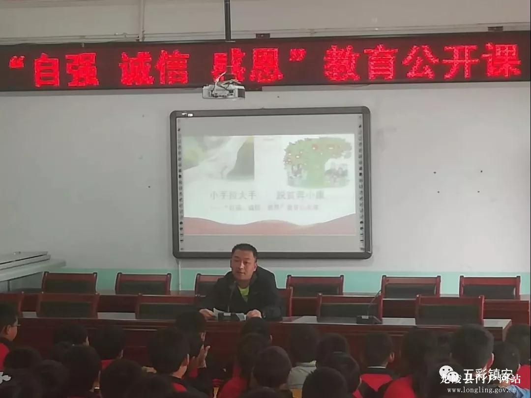 7月10日下午,镇安社区村民委员会主任张玉龙到镇安中心小学就“小手拉大手、脱贫奔小康”活动对该校四年级学生上了一堂“自强、诚信、感恩”主题的公开课。
