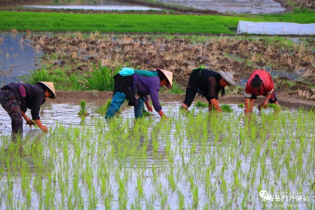 镇安玉带河两岸的田地与镇政府最近距离差不多300米,最远也不超过2公里,如果今天没有见到这样景象,还真记不起已到了插秧时节。一般到了“谷雨”时节,就开始到田育秧苗,“小满”之后秧苗长得差不多,就移栽到水田里去。“小满”刚过几天,恰好是插秧农忙时节,到龙陵工作了近五年的时间,插秧的农忙盛景都未曾见到,今天有幸“巧遇”,童年往事不断在脑海中呈现.....