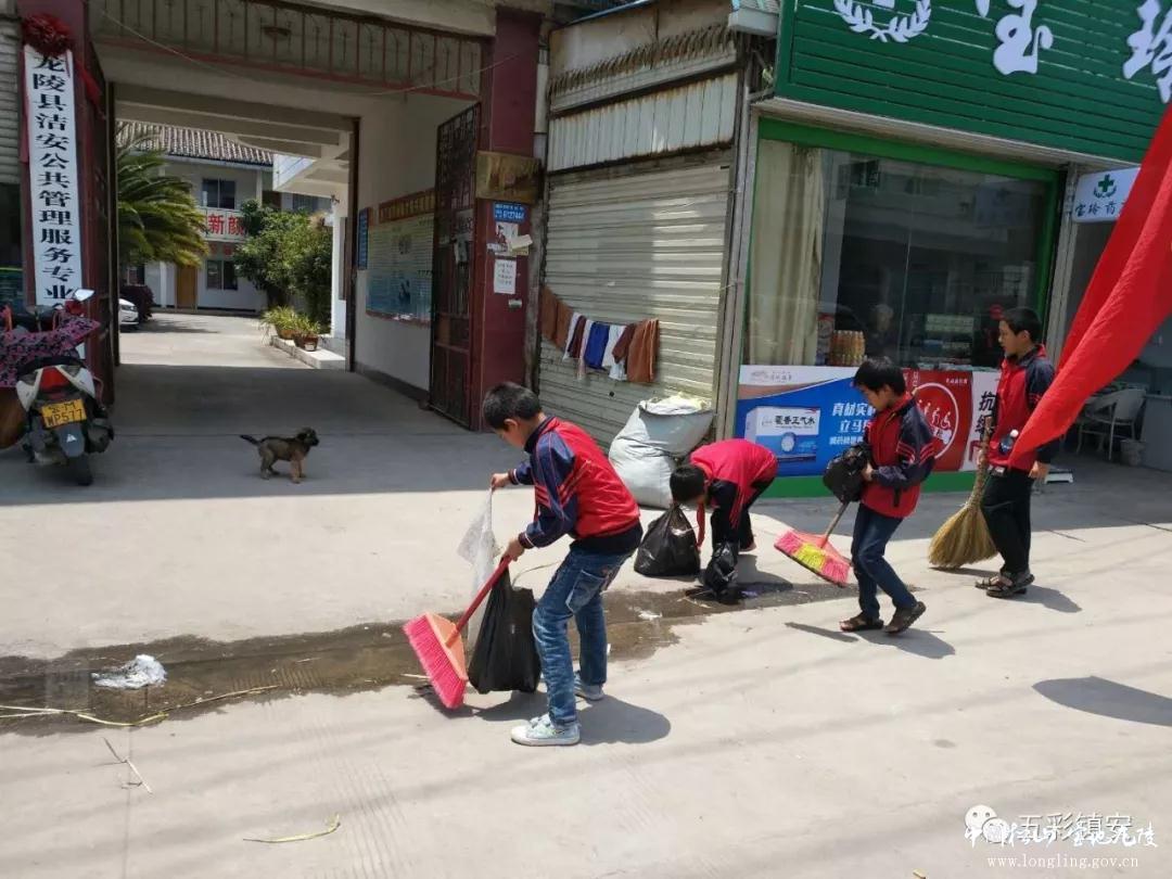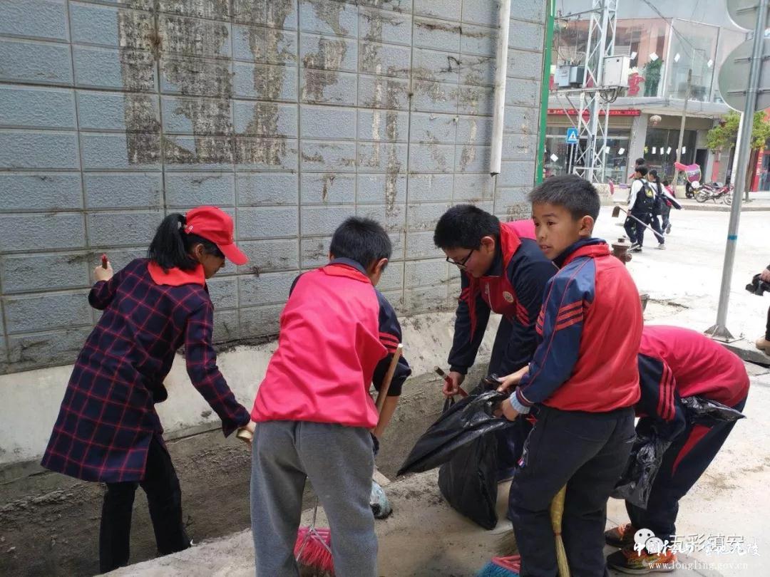 在镇安社区和镇安中心学校组织下200多名小学生遍布镇安街道的各个角落,对集镇内环境卫生进行清理。在近2个小时的时间中,“环保小卫士”发扬不怕苦、不怕脏、不怕累、团结协作的精神,对集镇内垃圾、墙面小广告进行清理。