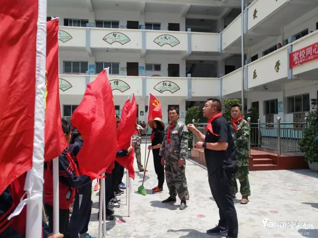 4月27日,在镇安街上各个角落你有没有见到穿着统一的服装、带着红领巾、拿着笤帚、撮箕、垃圾袋、举着少先队队旗的一群人?——他们就是来自镇安中心学校“环保小卫士”。