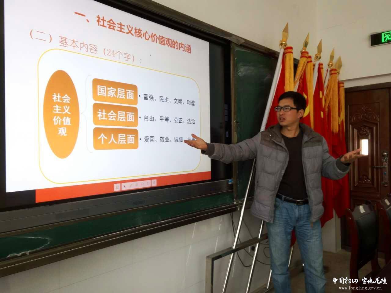 本次社会主义核心价值观培育活动主要从以下三个方面展开:一是核心价值观进校园。在中心学校的严格要求和监督落实下,每一所学校都积极主动的将24个大字放置在学校最显眼醒目的位置,做到让每一位师生每天都能瞻仰和温故核心价值观的核心要义;二是核心价值观上板报。严格要求各学校在校园内必须有一版以宣传社会主义核心价值观为主题的黑板报,通过黑板报的广泛宣传,增强了师生的理念,提高了师生的思想认识,同时也提升了校园文化培育厚度和承载力;三是核心价值观进课堂。开展主题宣讲,由中心学校制作整理出社会主义核心价值观讲座的PPT下发至各学校,再由相关教师进入课堂宣讲,主题宣讲紧紧围绕社会主义核心价值观的内涵以及中小学生如何积极培育和践行社会主义核心价值观两大层面展开,宣讲课件制作精美,图文并茂,浅显易懂,每位宣讲教师以最直观生动的语言向同学们阐释了社会主义核心价值观的精髓内涵,真正做到让核心价值观念入脑入心。