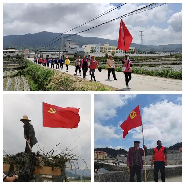 5月21日,党旗在玉带河畔高高飘扬,党旗下正在如火如荼地进行着一场清河大行动。从南向北,河畔正在上演一幕幕感人画面:镇南社区行动前入党誓词的重温激励着每一位党员埋头苦干;大坝社区接近古稀之年的老党员熊锐昌身先士卒做表率,年轻党员奋勇拼搏向老党员看齐;镇安社区五彩志愿队,队队撸起袖子加油干;镇北社区掌朝之年周有廷右手杵杖左手护党,督促河道中的年轻党员认真除草……即使风雨交加、杂草无数、垃圾成堆,也不能阻止镇安人民向“河畅、水清、岸绿、景美”的目标挺进。