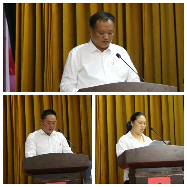 表彰大会在激情飞扬的红歌中按下启动键,镇党委书记赵孝磊同志领誓,面对鲜红的党旗,全体党员举起右臂,重温入党誓词,短短的十二句誓词,句句千钧。