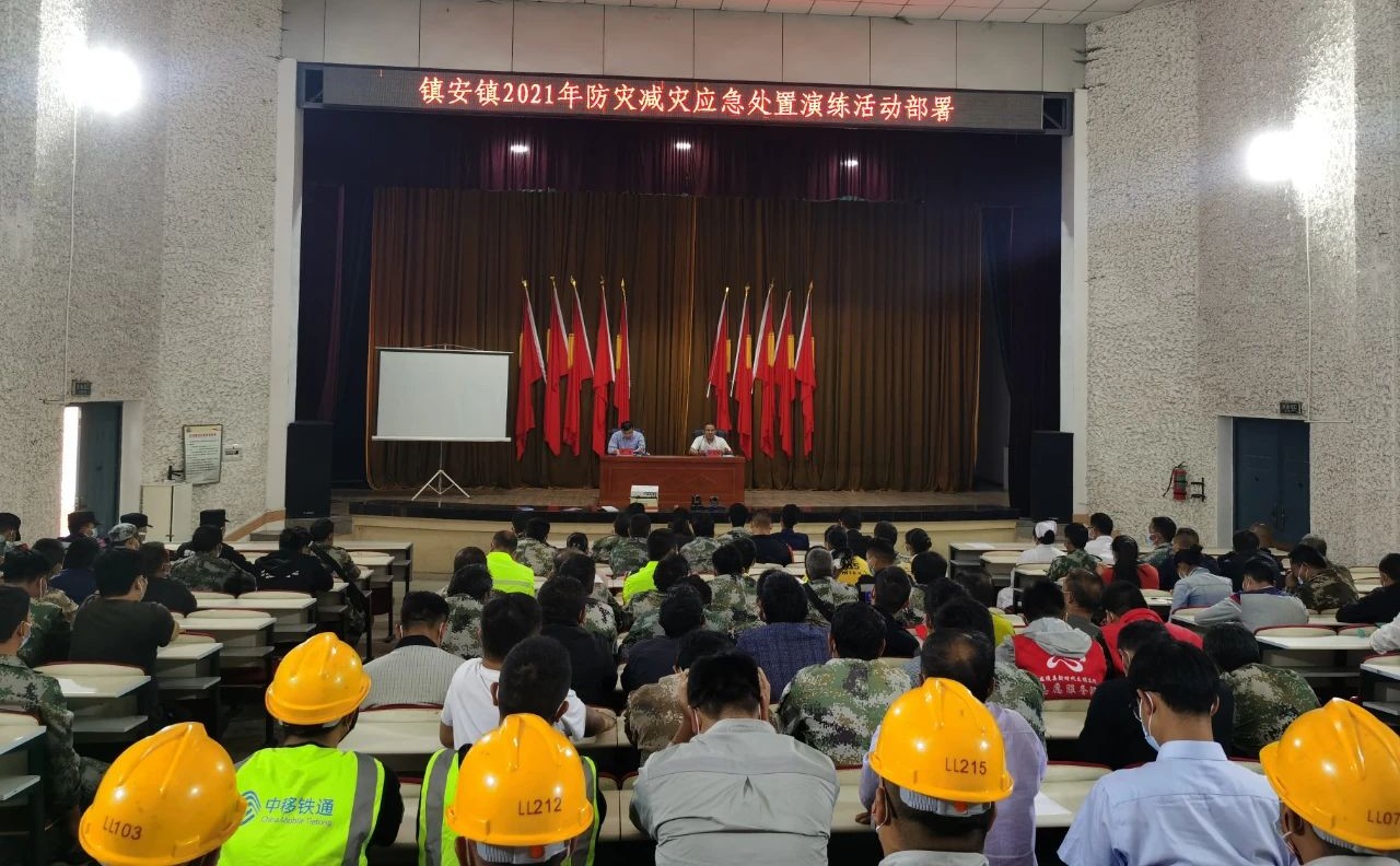在正式演练开始之前还召开了镇安镇2021年防灾减灾工作安排部署会。会上不仅观看了《生命重于泰山——学习习近平总书记关于安全生产重要论述》专题片,镇党委委员、镇人民政府副镇长杨有帅还带领全体成员学习了习近平总书记关于安全生产重要论述,并对此次防灾减灾应急处置演练工作重点进行再部署。 演练由镇人民政府镇长李超指挥,镇党政领导班子成员、镇防灾减灾指挥部成员单位主要领导、镇直及驻镇单位负责人及全体干部职工参加,各村(社区)总支书记、监委会主任、各村(社区)地质灾害监测员参加演练观摩演练,共计160余人。