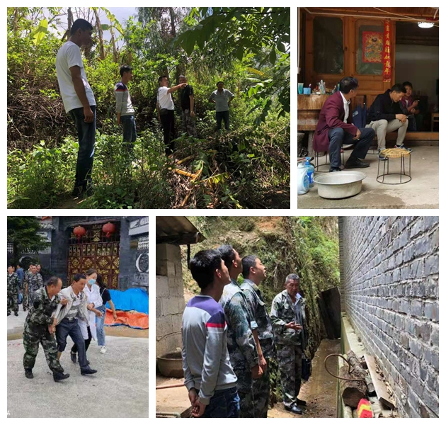消除隐患,全面排查。镇村干部按照“汛前排查、汛中巡查、汛后核查”要求,对山边削坡建房、简易工棚、施工工地房屋及设施等进行重点排查,及时排查各种风险因素,建立工作台账,并对各个地质灾害隐患点制定针对性的防治方案,同时做好应急演练,明确人员职责分工,防患于未然。