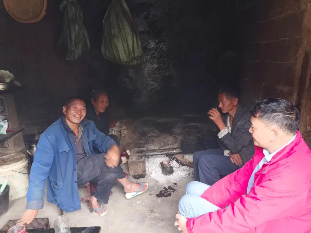 暴雨过后,常规的担心又袭上心头。雨还在下,我们两名驻村工作队员带上雨具,深入村庄,边走边观察有无新的地质灾害。沿着主干道绕村庄一周,没发现新的地质灾害,走进龙陵县镇安镇镇宝村镇宝一组村民范绍枝家。刚好镇宝三组村民范实昌也在他家,与范绍枝夫妇、范绍枝母亲在烤火闲聊。
