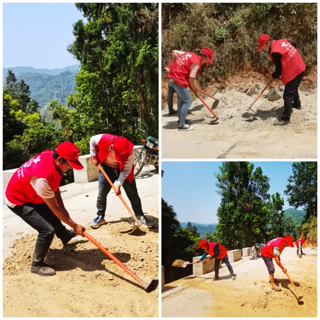 在大草山沟通往村委会的道路上,一堆泥沙堆在水泥路边很是碍眼,这是修复被毁村庄道路时没有及时清理而留下的。志愿者们二话不说,锄头、铲子齐上阵,“叮当叮当”地默契清理起来。出人意料的是,想着容易干着难。泥沙堆积久了,几近与水泥路结为一体,挖不动,铲费力,砸不行,软硬不吃。“别焦急,一点一点的抠”有人提议。这一招真管用,就是真费时。就这样抠一点铲一点,铲一点扫一点,手心儿火辣,尘土飞扬。志愿者们咬牙切齿,泥沙“紧抓”地面不放松,双方都较上了劲儿。路面出现了道道白痕,顽固的泥沙最终败给了大家的“车轮战术”。