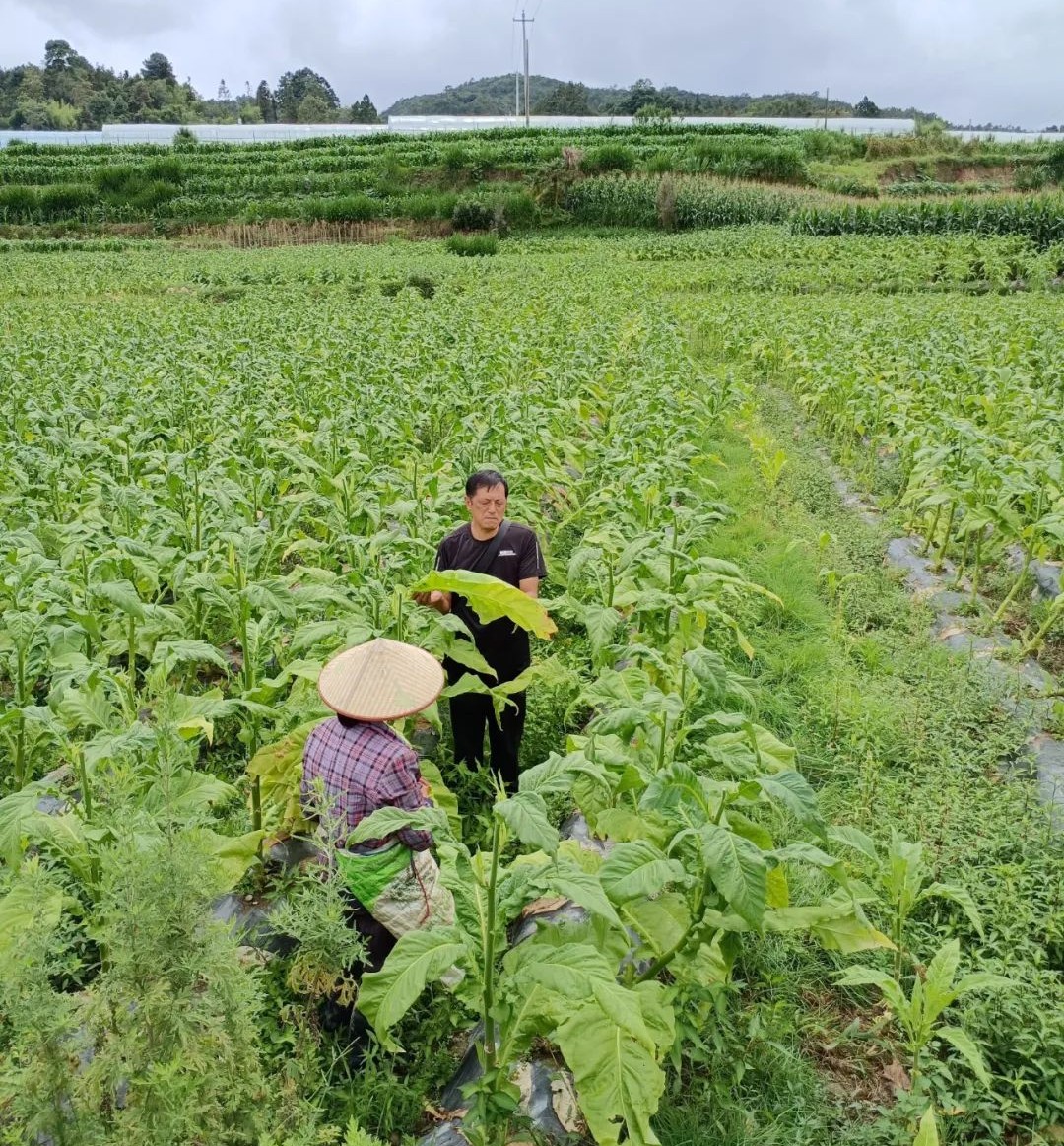 “你家这片烤烟由于栽植时间晚,还没有揭膜培土和追施钾肥,烟墒土壤疏松而烟根不发达,从往年的经验看,小暑节令都会有暴风雨,墒土疏松而根系不发达的烤烟有可能会倒伏,所以建议你现在就抓紧揭膜培土和追施钾肥,这样你今年的烤烟才会丰产丰收”,在龙陵县镇安镇八〇八社区干河的烤烟和玉米地里,只见两个正在劳作的农民围在镇农业综合服务中心技术服务组的技术员前对农作物相关问题进行提问。