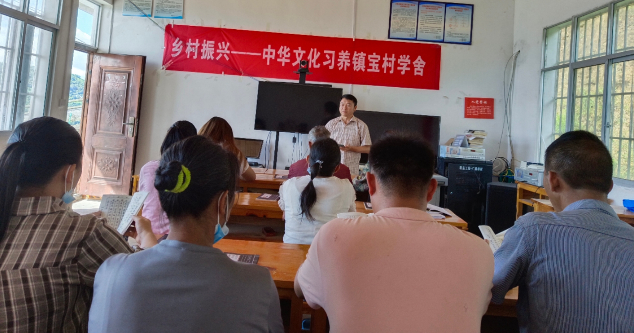 “黎明即起,打扫庭除,要内外整洁......”“弟子规,圣人训,首孝悌,次谨信……”村民们《朱子治家格言》和《弟子规》的诵读声从中华文化习养镇宝村学舍传出,自学舍成立,杨继西便经常在学舍为村民们讲解传统文化,村民们都成为了他忠实“粉丝”,一个个寓言故事,一句句名言佳句都被他插上生活的翅膀,与农村生活紧紧相连,让深奥的国学变得通俗易懂,切实可用。现在的镇宝村文化之根越扎越深,通过节会风俗等方式促进了村民们的有序结合与精神聚合,一步步的展现出镇宝人的精神气象,“农家书屋”“广播学党史”“中华文化习养镇宝村学舍”等这些新的阅读空间和阅读方式除了为乡村注入文化元素之外,也为乡村振兴提供了一种新的视角,要富口袋先富脑袋,在未来,学舍不仅是阅读空间,也是文化、艺术的创造之地,用这“阅读之火”点亮乡村振兴之路。