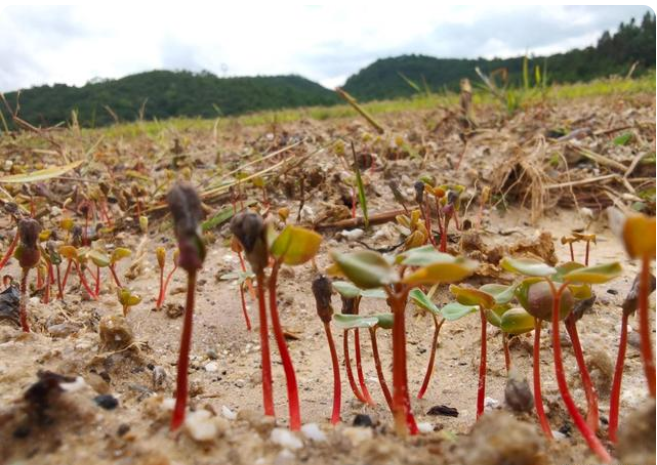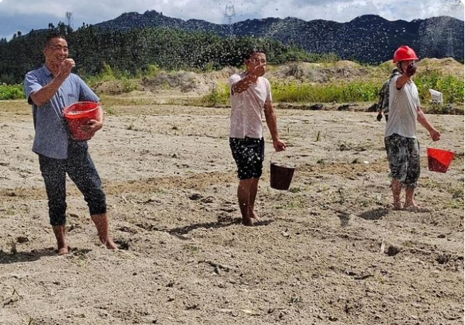 近年来,镇宝等相邻的几个村和大水沟村集体经济滞后而又难以突破。镇党委政府积极协调、划拨近300亩土地,由镇宝等四个村投入种植成本,试种荞麦和蚕豆,发展壮大集体经济。如何既做好行政事务,又搞好农业生产?8月底以来,镇宝等四个村统一思想、团结协作、分工合作。各村党总支书记、驻村第一书记、党员为先锋,非党村属人员、驻村工作队员和林管员、保洁员等组成“战斗”堡垒。各村根据实际情况分配、调剂人员,保证每天总上工人数在10人以上。不分男女、中青年,洒落田间就是力量,大家根据自己的使用习惯,镰刀、砍刀、锄头齐上阵,有的创新方法,徒手上阵依然有效。噼里啪啦、说说笑笑间,上一季的烟杆纷纷落地,漫天飞舞的烟花“归顺”沟渠——这类稍有肥力地块是要腾出来种植蚕豆的。在另一类“瘦弱”的地块,大家七手八脚卸种子、肥料,提水洒水,搅拌种子。你铲我提,你运我撒,你撒我盖。在覆盖种子的环节,微旋耕机成为最亮的“星星”,大家都争先恐后尝试“明星”的感觉,可大都因为体力不支败下阵来,留下的才是被公认的“机手”。广袤的土地看似一望无际,却禁不起全员一字排开、战天斗地的干劲。随着整体有序推进漫天“飞雪”“满天星”式的播撒,前期已完成170多亩荞麦种植,小小的荞麦正红着脸羞答答地陆续吐露新芽,陆续长大。