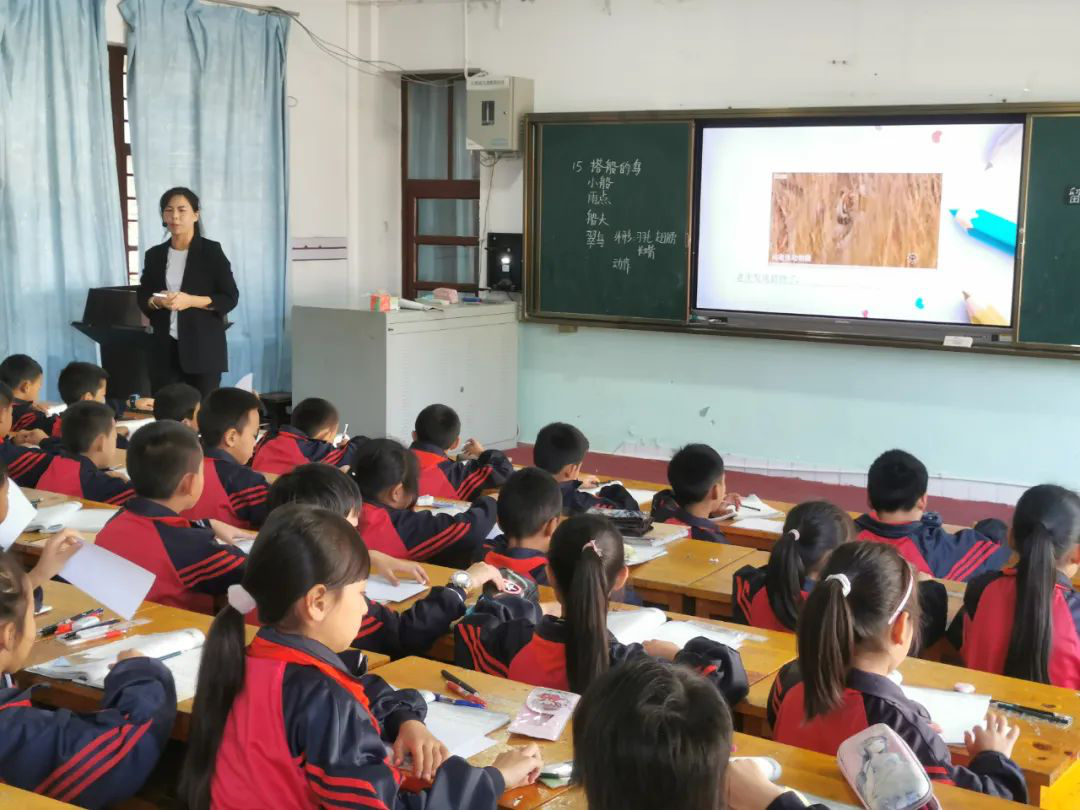 第三节课是镇安镇中心学校邱妮老师带来的三年级语文课——《搭船的鸟》。在新课讲授的环节,邱老师抓住翠鸟的外形和捕鱼动作的特点,告诉学生作者是怎样留心观察的,并让学生进行了课堂小练笔。