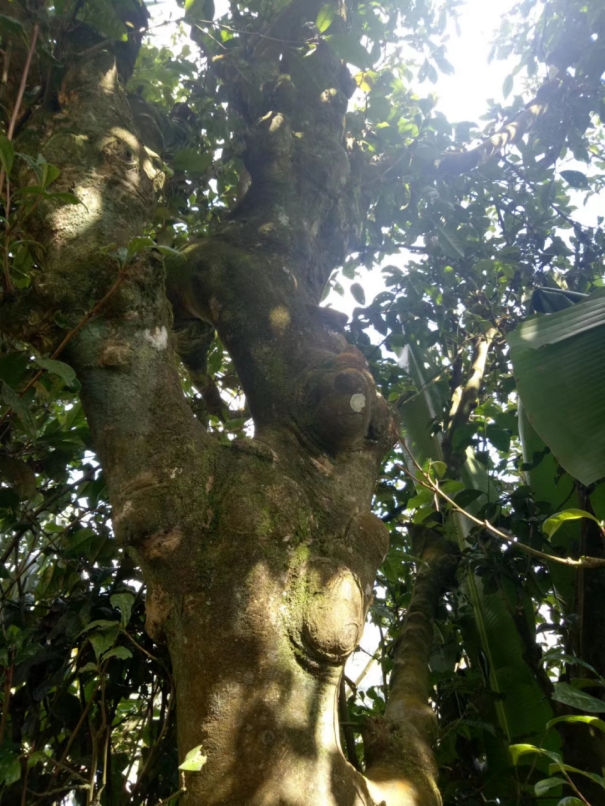 说真的,挂钩十余年来,没有真正地刻意关注过这些古茶树。有的已被岁月和风雨剥蚀的只剩下半个躯壳,仍在顽强生长,沧桑感一目了然;有的枝丫横溢,生机勃勃欣欣向荣,使你看不出它们曾被历史的烟云淹没;有的铁骨铮铮,包瘤凹凸,就像饱经风霜慈祥的老人。如果这些还不够惊动你的视觉神经,叩击灵魂的话,那么你可能就是一个世外之人。