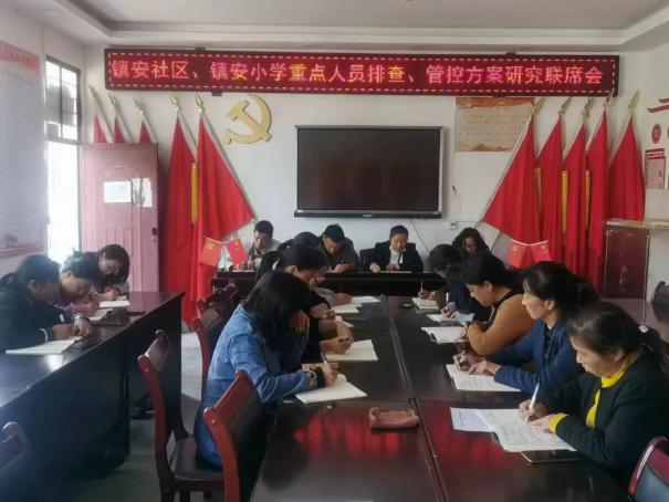 社区党总支书记与镇安小学工作人员召开联席会议。