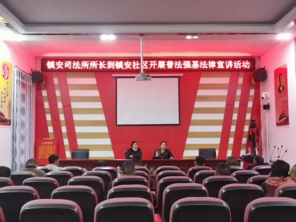 镇安司法所所长到镇安社区开展普法强基法律宣讲活动。