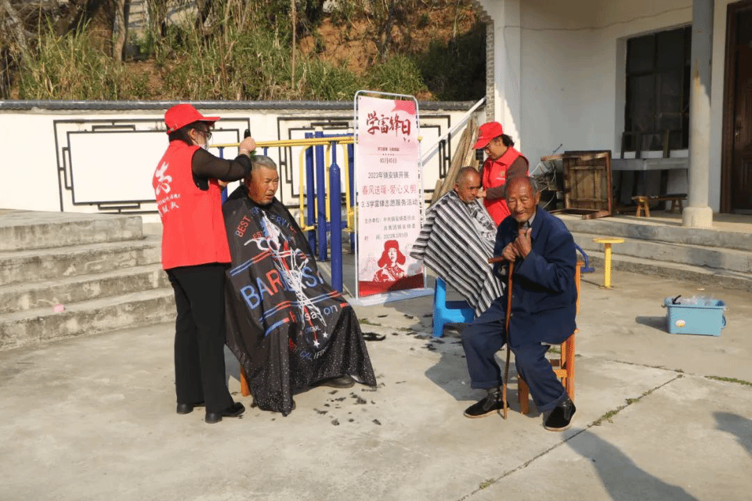 融入文明创建。结合文明单位、文明村镇、文明家庭、文明校园创建过程,引导广大志愿者积极开展关爱特殊人群、环境保护、扶贫济困、讲文明树新风和党员志愿服务活动,有效树立“我为人人、人人为我”的生活新风尚。在“3.5雷锋日”镇安镇新时代文明实践所联合3家理发店到村社区开展“春风送暖 爱心义剪”志愿服务活动,为老年人、儿童、残疾人提供义剪服务,获得群众点赞。