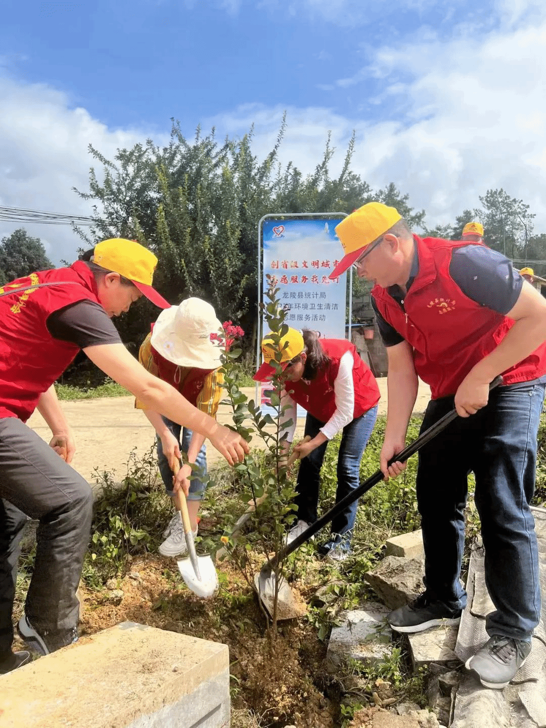 为深入学习贯彻习近平生态文明思想,牢固树立“绿水青山就是金山银山”的发展理念,近日,龙陵县统计局到八〇八社区“一村一示范”创建点烂澡塘村民小组开展了“营造绿色环境、树立绿色观念、传播绿色文明”的义务植树活动。此次活动共有党员干部、村民群众30余人参加,为社区的“一村一示范”创建增添了新活力。