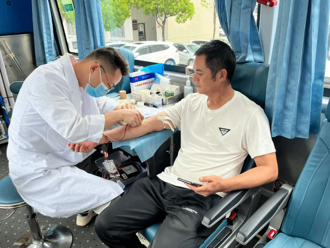 清晨,虽然天空下起了小雨,但丝毫未影响大家献血的热情。在医护人员及街道工作人员的指引下,大家有序排队完成个人信息登记、测量血压、血液初筛等流程。整个献血过程秩序井然,各个环节有条不紊。经过初步筛查后,身体指标符合要求的爱心人士来到献血车内进行抽血。“我们夫妻二人每年都参加献血,希望用自己生产的血液为社会做一点贡献。”