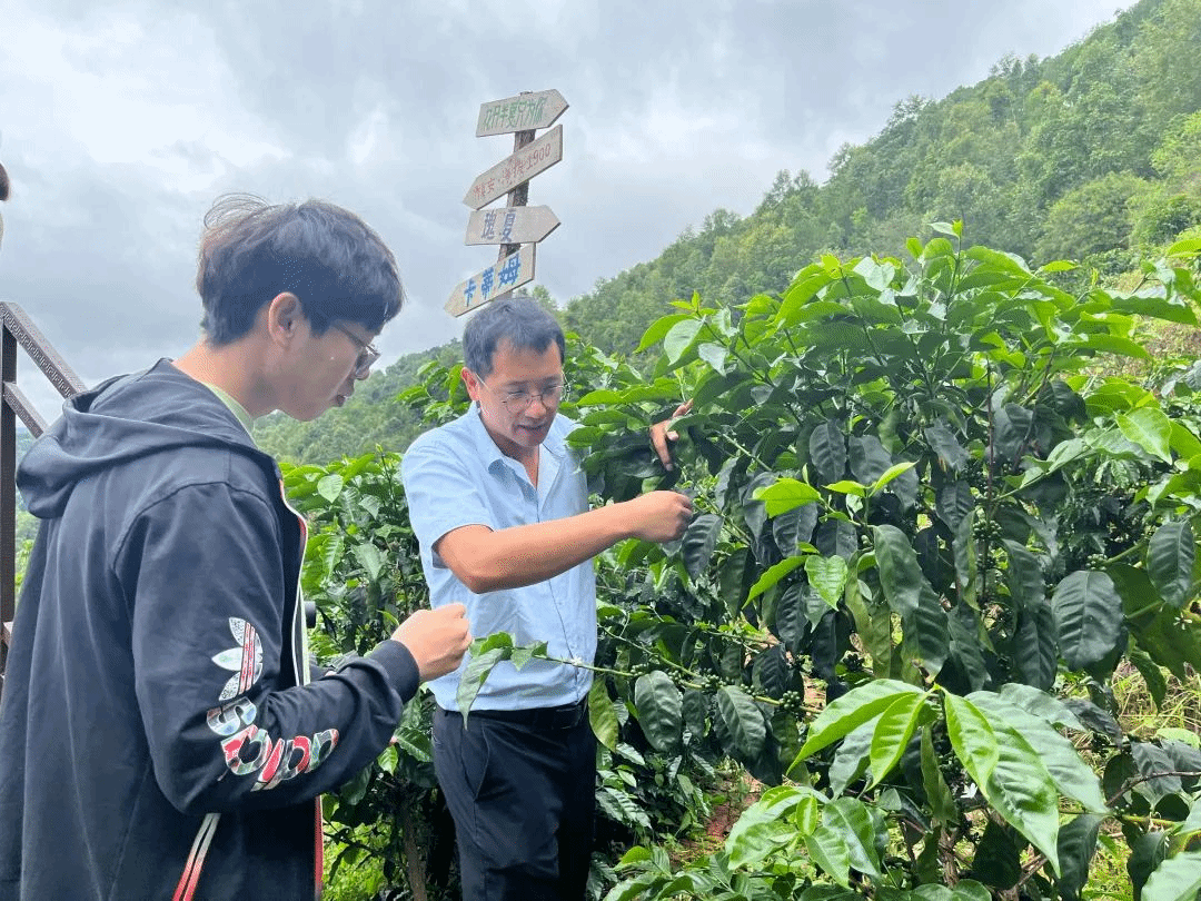 为了持续释放人才效能,达成“一户带动一片、一片带动全村、全村推动全镇”的发展目标,在镇党委牵头推动下,楠迪咖啡有限公司与咖农形成互利共赢、良性互动的利益联结机制:一方面是无偿提供瑰夏种苗交由农户种植管理,挂果后又统一收购,带动农户发展高品质咖啡,同时每年以高于市场的价格收购全红咖啡鲜果。2024年以来已收购全红咖啡鲜果300多吨,生产精品咖啡生豆50多吨,带动咖农实现收入150多万元,聘用10余名当地群众就近务工,人均实现收入2万多元。另一方面是与本地咖农分享先进的咖啡种植管理技术,截至目前已累计带动1600余户咖农提升咖啡种植管理技术,不断提高种植收益。同时,为充分发扬储明孝同志在助力咖啡产业振兴中作出的巨大贡献,经镇党委推荐,2024年褚明孝被授予“保山市优秀共产党员”称号。在人才与产业发展的互融互促、同向发力下,镇安镇精品小粒咖啡受到了更多人的青睐与喜爱。2024年7月,中国人民大学“大国边疆”育人工程云南保山实践团走进了楠迪咖啡进行现场调研,了解了楠迪咖啡作为当地本土企业的初心理念、发展进程及未来规划等,并就咖啡的产业化规模化、自主品牌的打造,以及如何更好地将产业发展与带动居民致富进行了交流探讨,一幅“产业引聚人才、人才赋能产业”的生动画面正在徐徐展开。